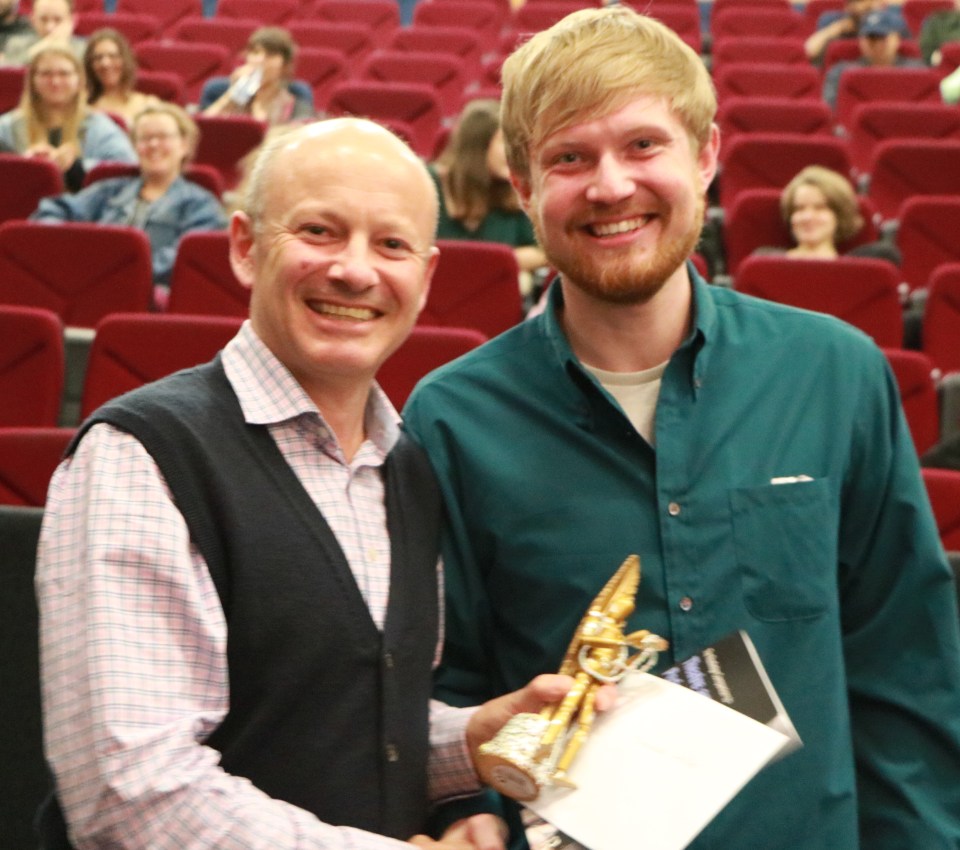 Ellie MacPherson receives the Prize on behalf of Maddie Spencer. Shalini Arias Hurtado constructed the trophy.